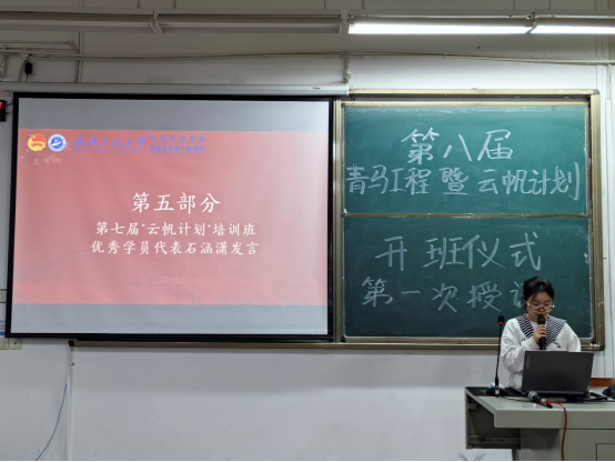 在热烈的掌声中,第七期“青马工程”优秀学员代表李思含与第七届“云帆计划”的优秀学员代表石涵潇分别发言,分享了他们在培训中的经验与收获,为新一届学员们树立了榜样。