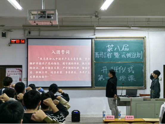 活动伊始,随着庄严的团歌奏起,全体成员齐唱团歌后重温入党誓词,现场氛围肃穆,展现了青年团员的坚定信念与使命感。