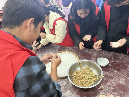 进入包饺子环节,志愿者们化身“公益导师”,手把手向孩子们传授填馅、捏褶的技巧。孩子们兴致盎然、积极实践,在指尖翻飞间尽情发挥创意,既有圆润饱满的“元宝饺”,也有形态各异的“创意饺”,每一枚饺子都包裹着童真童趣与浓浓的节日喜悦。